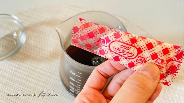 今回は洗い物を減らすために、インスタントコーヒーを溶かした容器に砂糖とゼラチンを入れました。