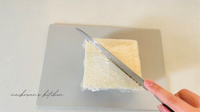 後でだと、分厚くて切りにくく、せっかくのフルーツサンドが崩れてしまう危険があります。
